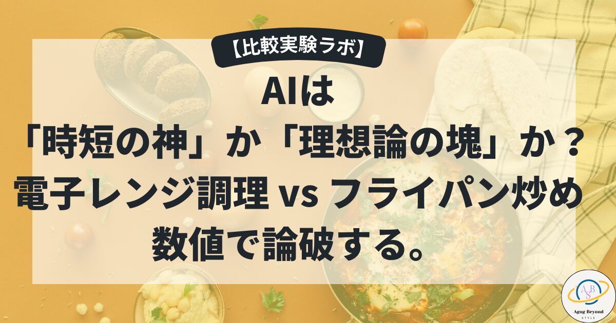 【徹底比較】AIは「時短の神」か「理想論の塊」か?電子レンジ調理 vs フライパン炒めを数値で論破する。