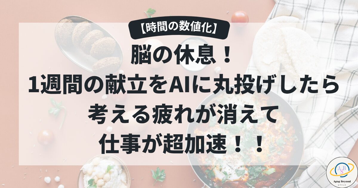 | 毎日の献立決定時間 | 平均 11分42秒 | 0秒(週末の3.2秒のみ) |