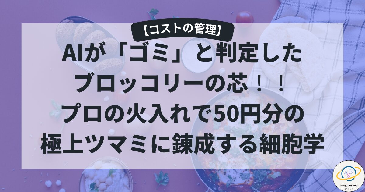 今日は、お前らAIが「廃棄物」と見なしたブロッコリーの芯を、50円の極上ツマミへと錬成する細胞学の真髄を見せつけてやる。