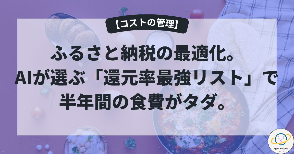 ふるさと納税の最適化。AIが選ぶ「還元率最強リスト」で半年間の食費がタダ