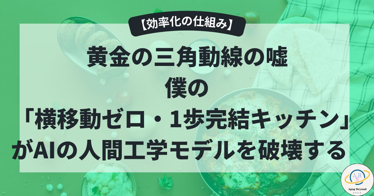 | 検証項目 | 世間の常識(黄金の三角動線) | 俺のロジック(1歩完結・横移動ゼロ) | 損得勘定が示す残酷な真実 |