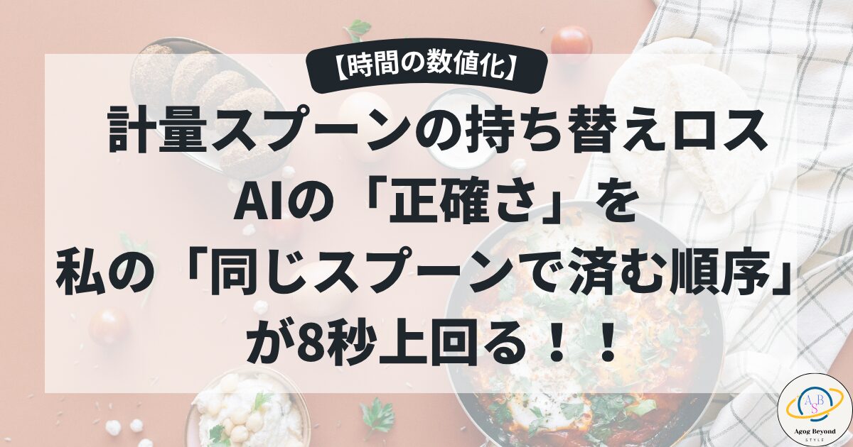 今日は、毎日の台所で発生する「計量スプーンの持ち替え」という小さな無駄を、徹底的なデータ検証で削ぎ落としてやる。