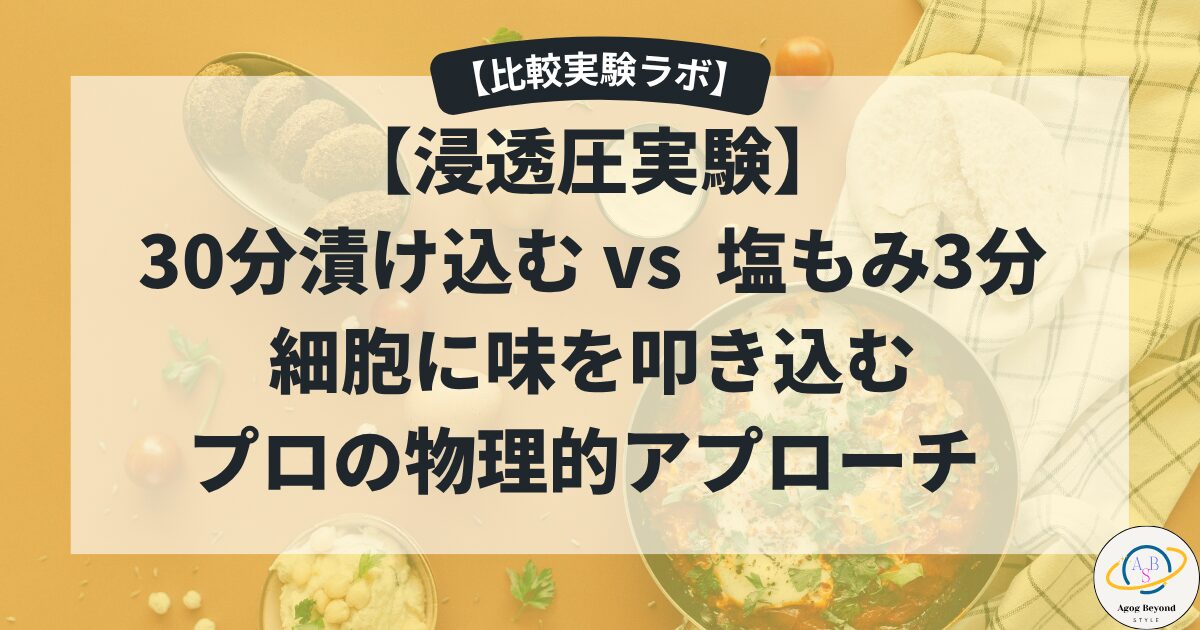 壁が壊れた細胞からは、あっという間に水分が外へ逃げ出し、代わりに塩分がダイレクトに細胞の奥深くへと侵入していく。ただ待っているだけでは30分かかっていた浸透圧のプロセスが、細胞壁という障害物を物理的に取り除くことで、わずか「3分」にまで圧縮されるのだ。