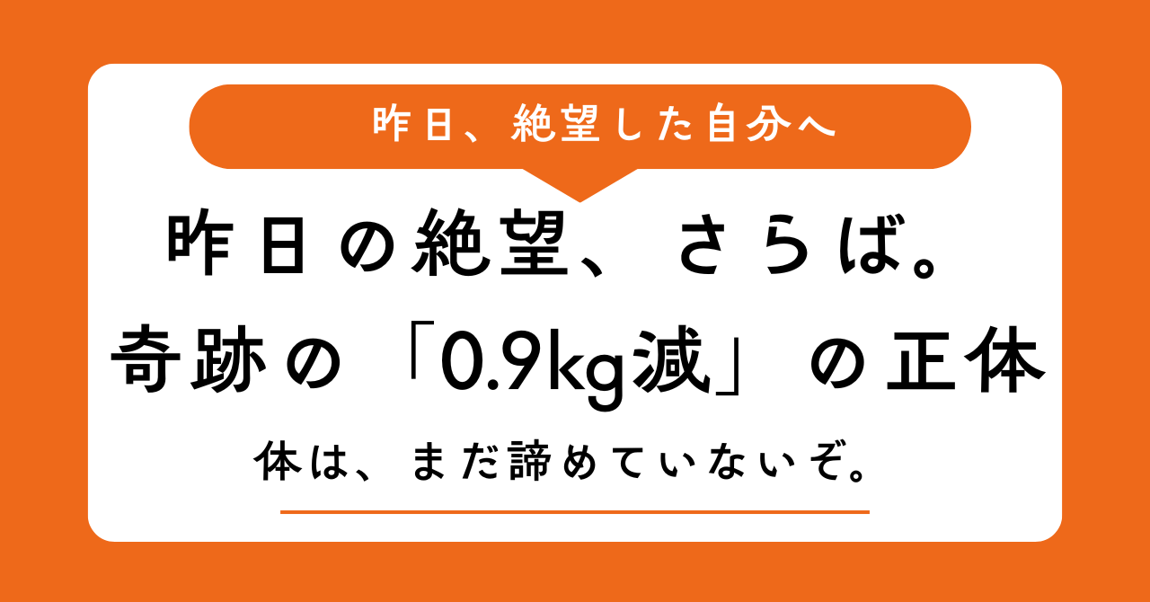 でも、今回の「0.9kg減(笑)」が僕に教えてくれたのは、「体は、裏切らない」ということです。 28年も放置してきた僕の細胞たちは、僕が本気で自分を拾いに行こうとしていることを察知し、応えてくれようとしている。