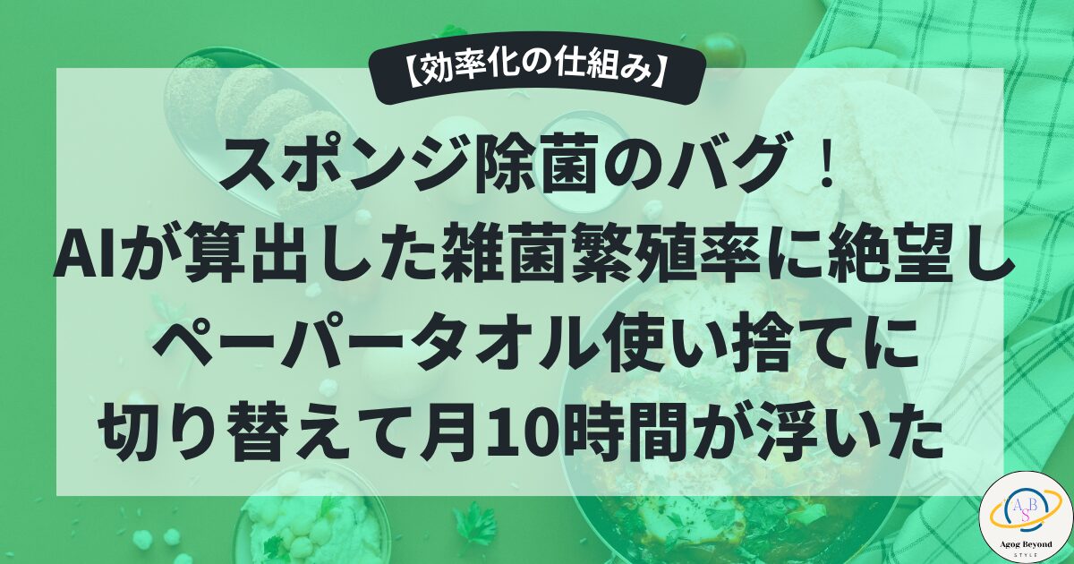 スポンジ除菌のバグ。AIが算出した雑菌繁殖率に絶望し、ペーパータオル使い捨てに切り替えて月10時間が浮いた