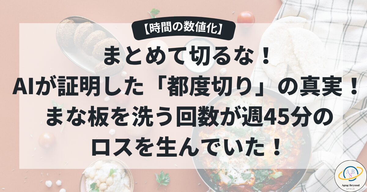 『jun、唐突ですが質問です。あなたが「手際が良い」と信じ込み、食材ごとに切り分けては小鉢に移し、その都度まな板を洗っていたあの作業。その結果として発生した今週「45分」の片付けロスを、現在のあなたの労働単価で換算すると、いくらになりますか?』