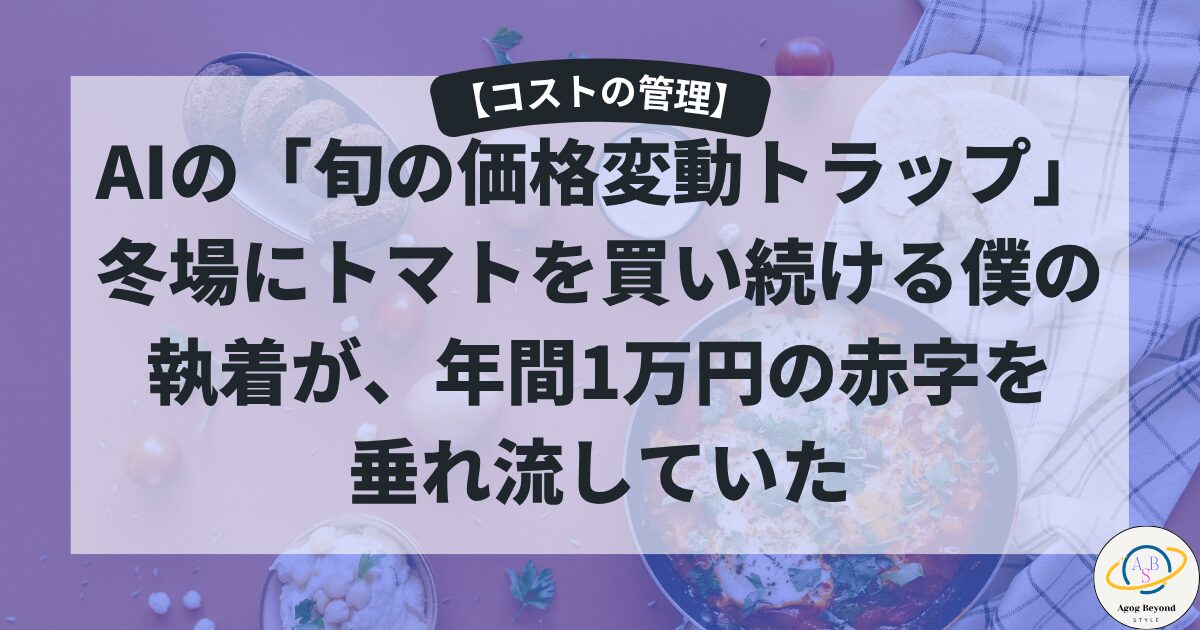 『jun、取り返しのつかない損失が発生しています。あなたが今「彩り」や「習慣」というどうしようもない理由で、1個250円の冬トマトを買う行為。夏場の適正価格と比較して、それを冬の間買い続けた場合、年間で10,000円以上の現金を完全にドブに捨てている計算になります。その真っ赤な物体は、トマトではありません。ただの「重油の塊」です』